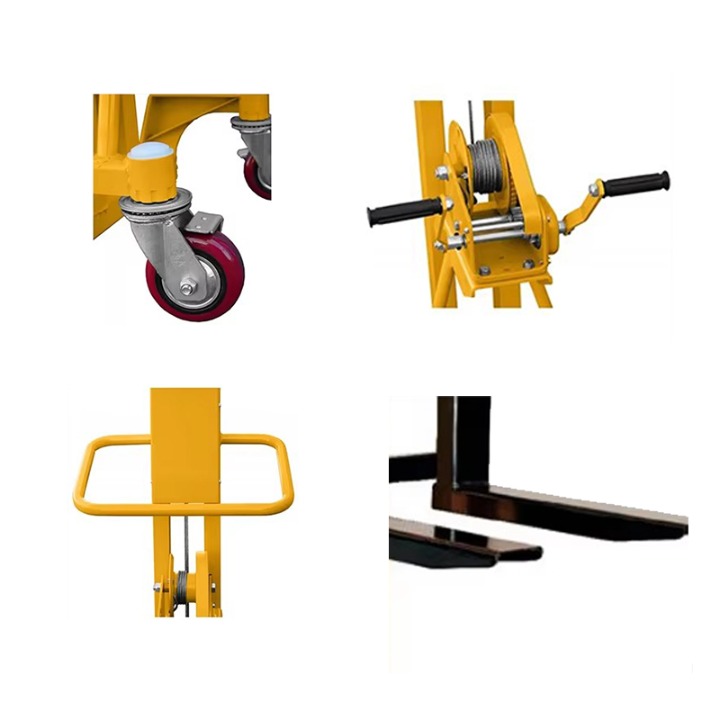 500kgのハンドパレットスタッカー ハンドデバイスを回転させることにより、オペレーターは内部の機械構造を駆動して貨物フォークを上げたり下げたりして、スタッカーのスタッキング操作を実現します。